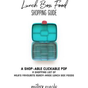 A clickable, printable shopping list with all Mila’s favourite ready-made gluten-free, dairy-free and refined sugar-free Lunch Box Snacks. A new nut-free selection added too!